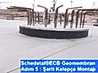 Adım 4 : Çelik kalıp içerisi dolgu uygulamasını takiben, radye temelden gelen ExtruBit® ECB veya ExtruPol® FPO geomembran ürünleri, ExtruSeam su tutucu profil malzemesine sıcak hava kaynağı ile birleştirilerek su sızdırmazlığı sağlanacaktır. Kazık başı su izolasyonu uygulaması sırasında epoksi esaslı grout veya poliüretan esaslı sürme su yalıtım ürünlerinin kullanılması önerilmemektedir. Epoksi veya poliüretan esaslı ürünler negatif yönden gelen su basıncına karşı dayanımlı değildir.